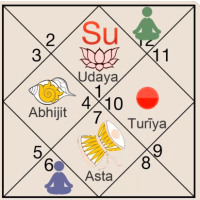 • Dasāṁśa Yoga - The dasamsa should be analyzed in detail independently like the Rasi Chart. The artha (Artha: Finance, money) trikona is composed of the 2nd, 6th & 10th house. Planets in these houses will have a direct bearing on the functioning of the native. Any planet in the tenth house is independently capable of giving good yoga that could mean power, rise and success in ones career. In addition, the seventh house should also be studied, as it is the pada to the tenth. If the Sun dominates in these houses, a political career or simi­lar public service is indicated. Mars gives… Continue Reading