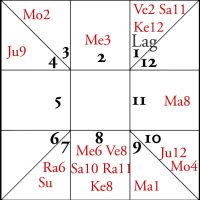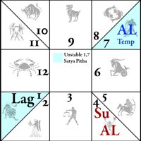 • Bhāva Pada Chakra - Popularly called the Ārūḍha Chakra, this is a chart drawn with the Lagna and planets and showing the ārūḍha pada of the bhāva in the signs. The nomenclature for any bhāva ārūḍha is normally ‘A’ followed by the number of the bhāva except for Lagna and twelfth house which are designated as AL for Ārūḍha Lagna and UL for Upapada Lagna.